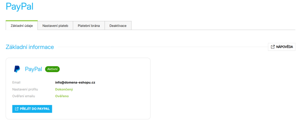 Základní informace k propojení s PayPal najdete v článku Propojení s PayPal – základní informace.